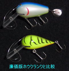 | やっとここまで小さくする事が出来ました。 Originalの性能はそのままです。 小さくてもデカバスの釣果は落ちません。 引き抵抗は、ホウクランクと同等。 女性や子供でも楽に引く事が出来ます。 |